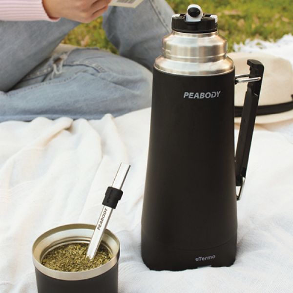 - Tapa mate térmica con pico cebador antigoteo y bombilla acero inoxidable integrada en la manija.