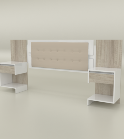 - Incluye 2 mesas de luz con 1 cajón estante.